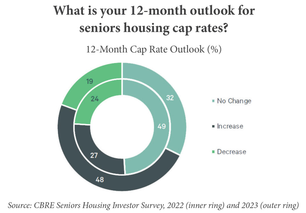 By Matt Valley More than 75 percent of investors surveyed by CBRE expect rental rate increases of at least 3 percent over the next 12 months across all seniors housing asset classes except skilled nursing. The most bullish outlook is in the assisted living sector where 28.1 percent of survey respondents expect to underwrite rent growth above 7 percent, up from 15 percent in the 2022 survey. No decreases in rental rates are expected for any asset class. Meanwhile, difficulty in maintaining adequate staffing levels ranks as the greatest headwind …