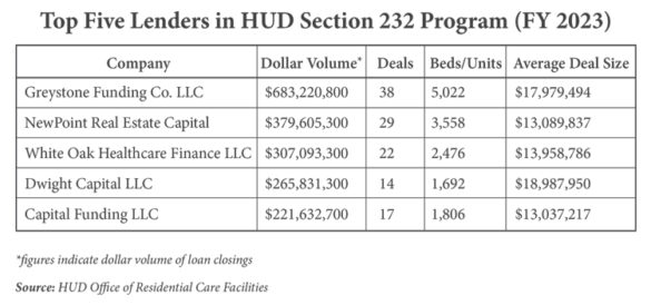 “This [spike in the average deal size] makes sense because the larger facilities have the economies of scale to mitigate some of the increase in operating expenses associated with our current inflationary environment,” says Chris Clare, managing director at Greystone. The company ranked as the top lender in the HUD Section 232 loan program for the fourth consecutive year. Greystone closed 38 loans totaling $683.2 million in FY 2023.
